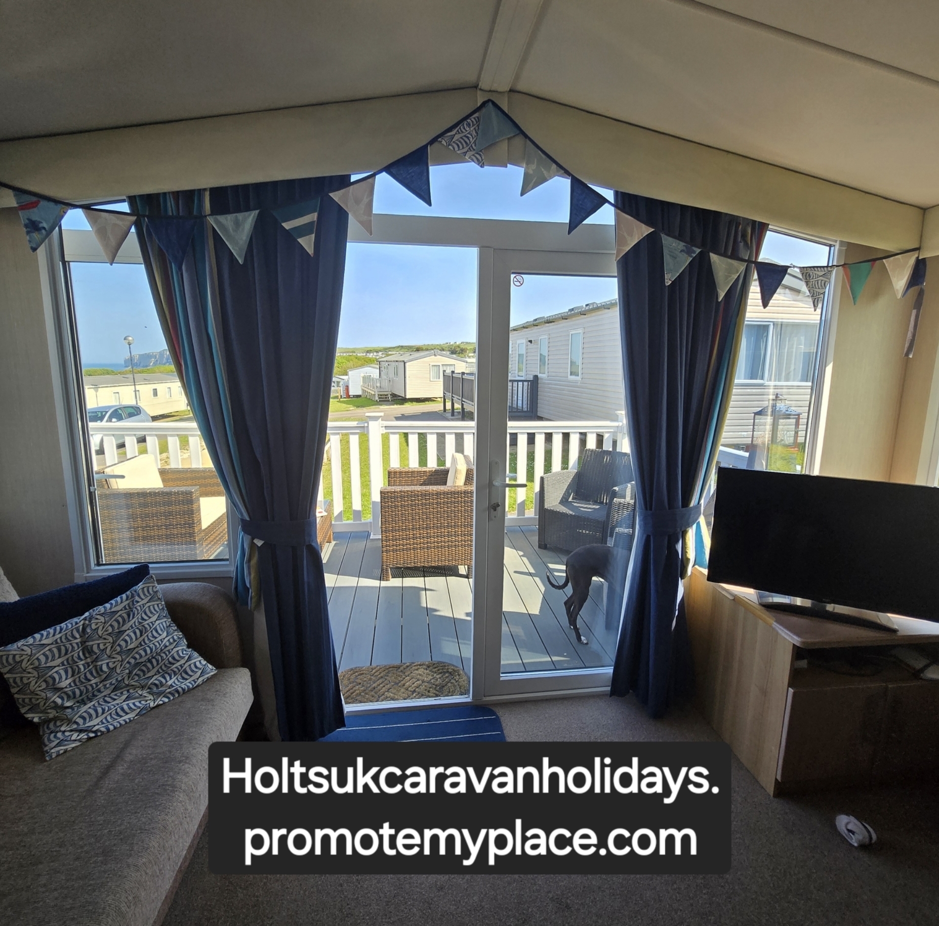 It has wrap around decking and front patio doors .. the sea views are amazing ..