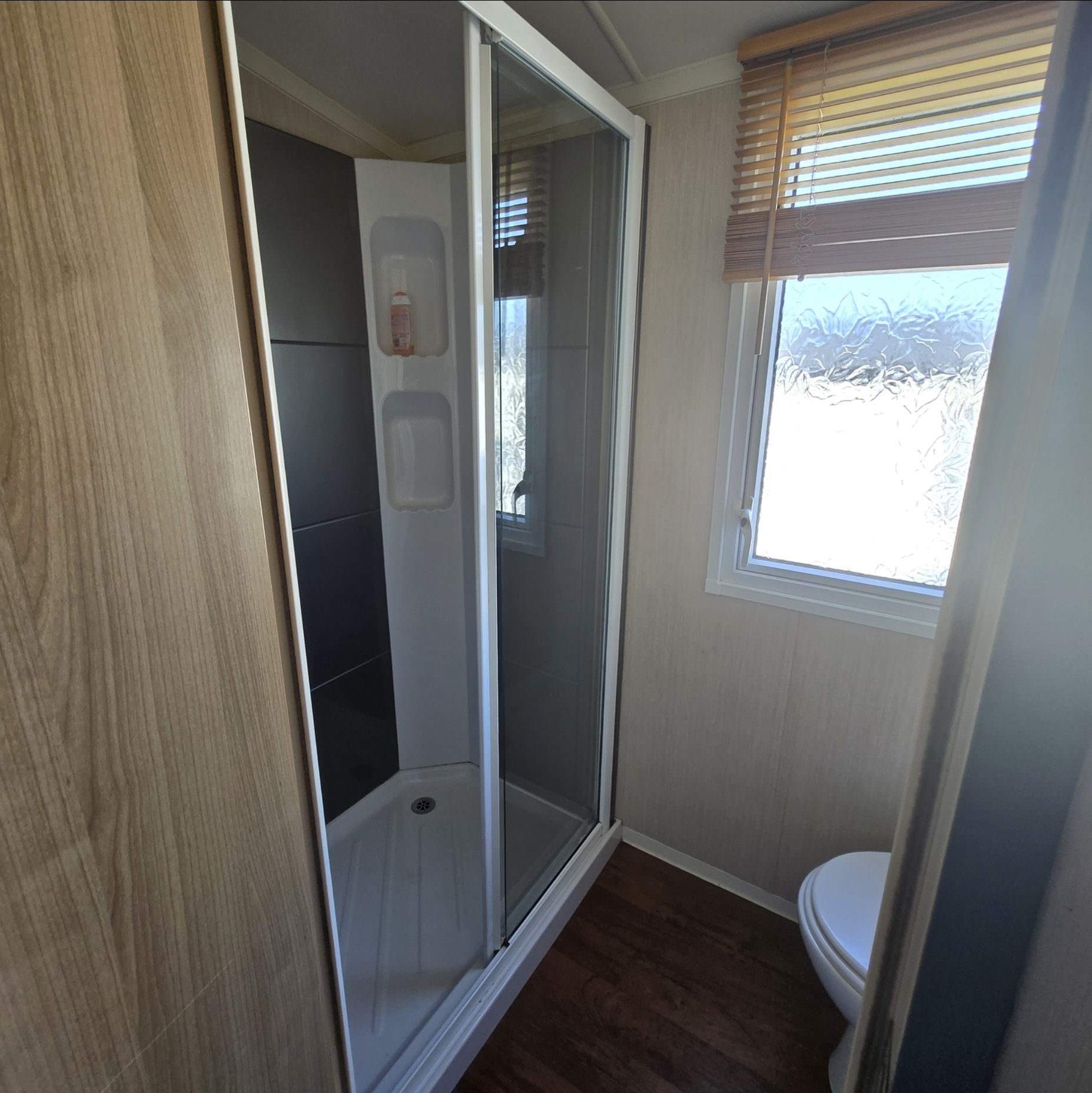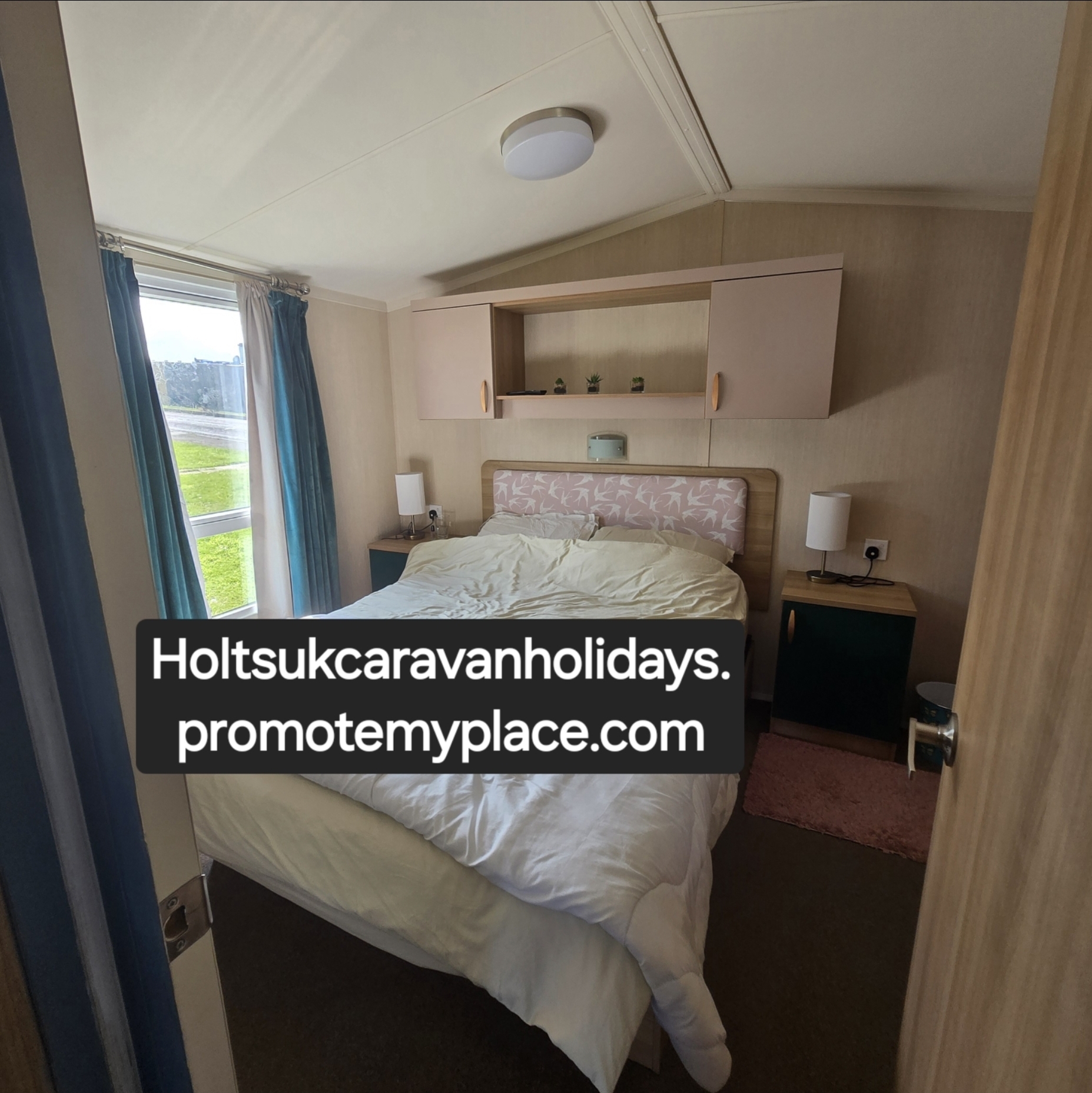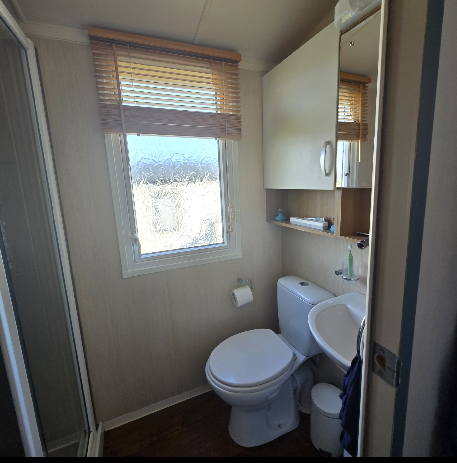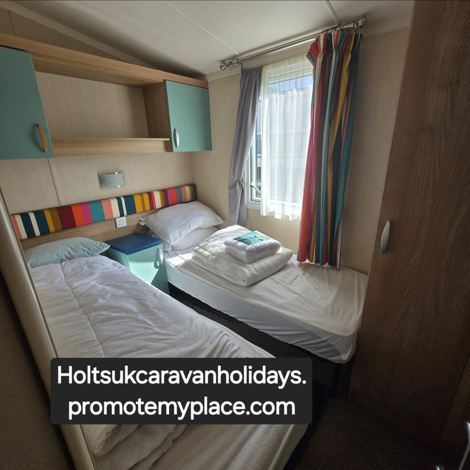 This 2 bedroomed caravan is situated on a quiet part of the park .