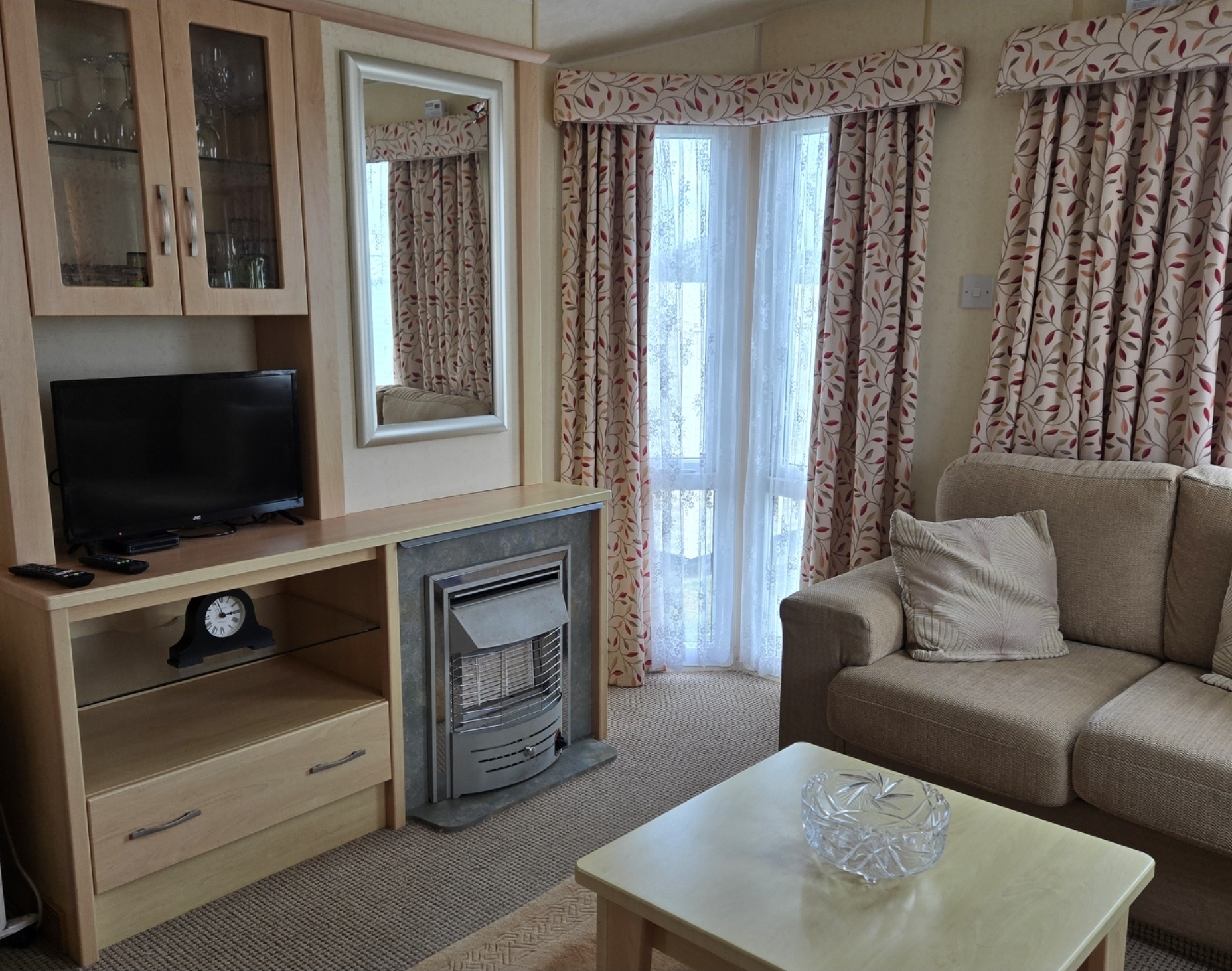This 2 bedroomed caravan is just a 2 min walk from the main facilities on Thornwick bay .