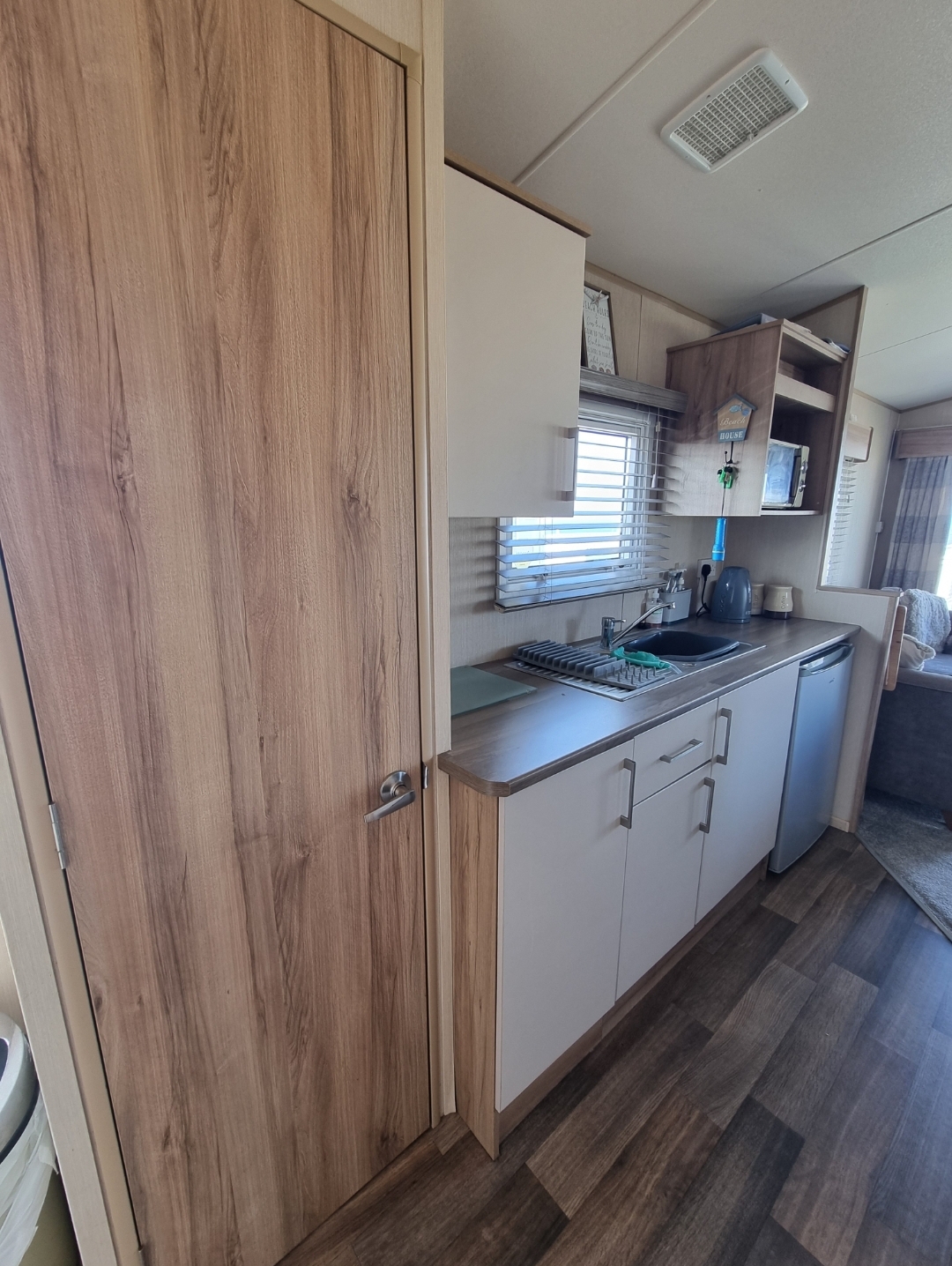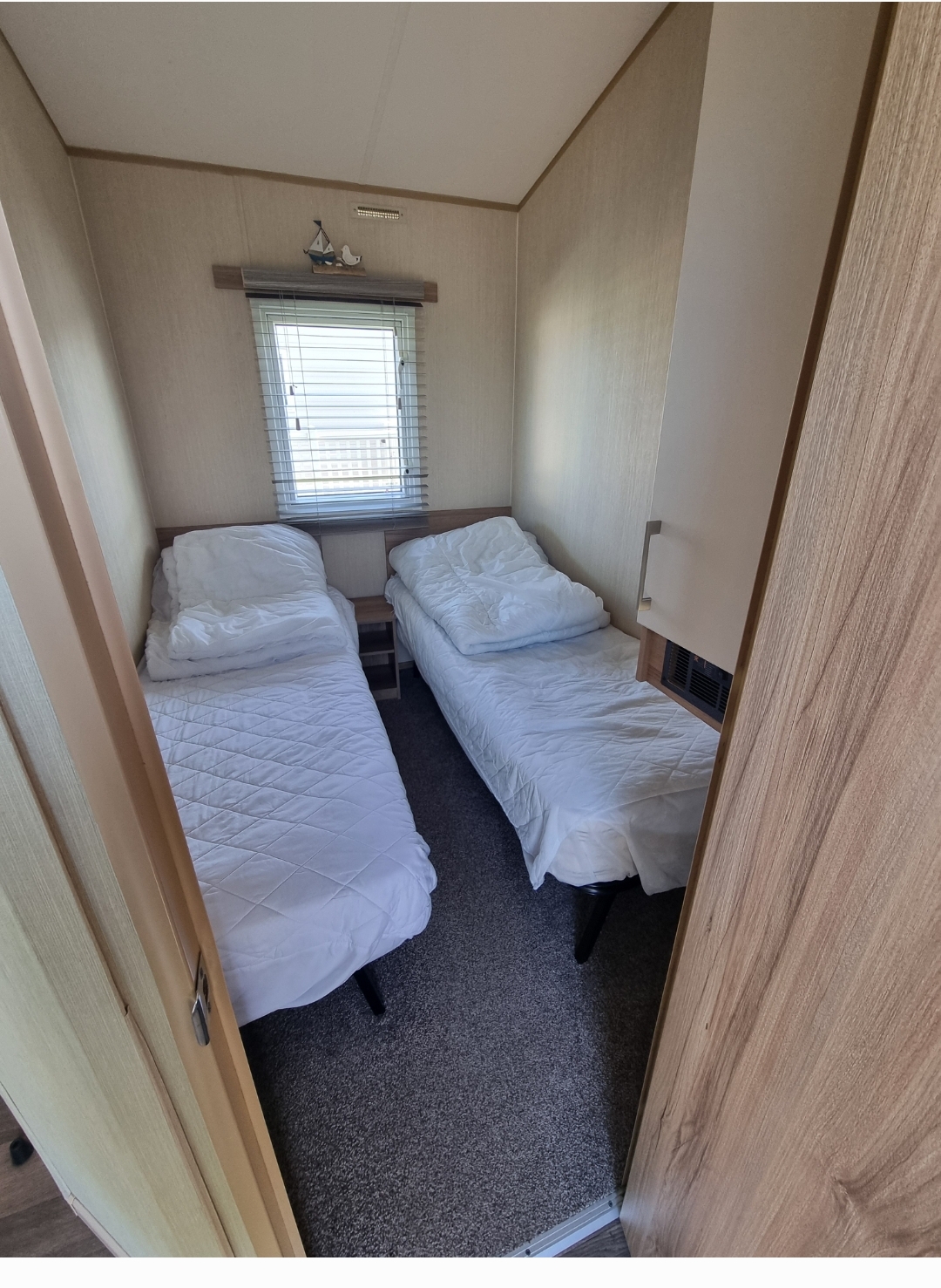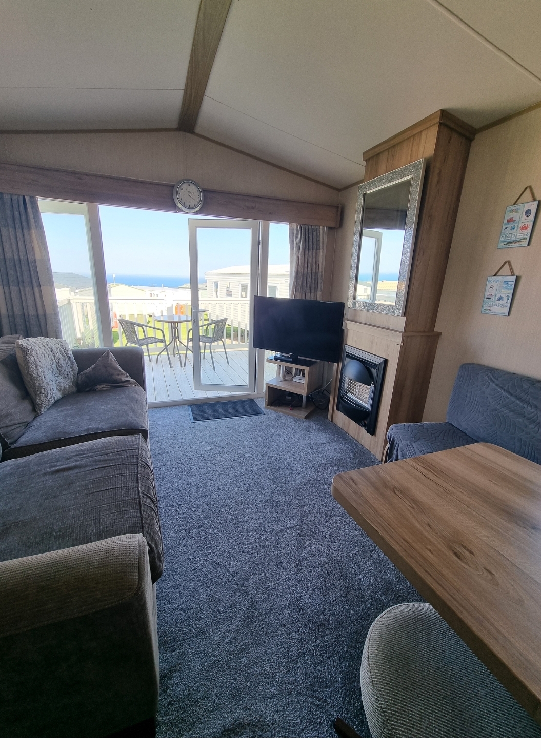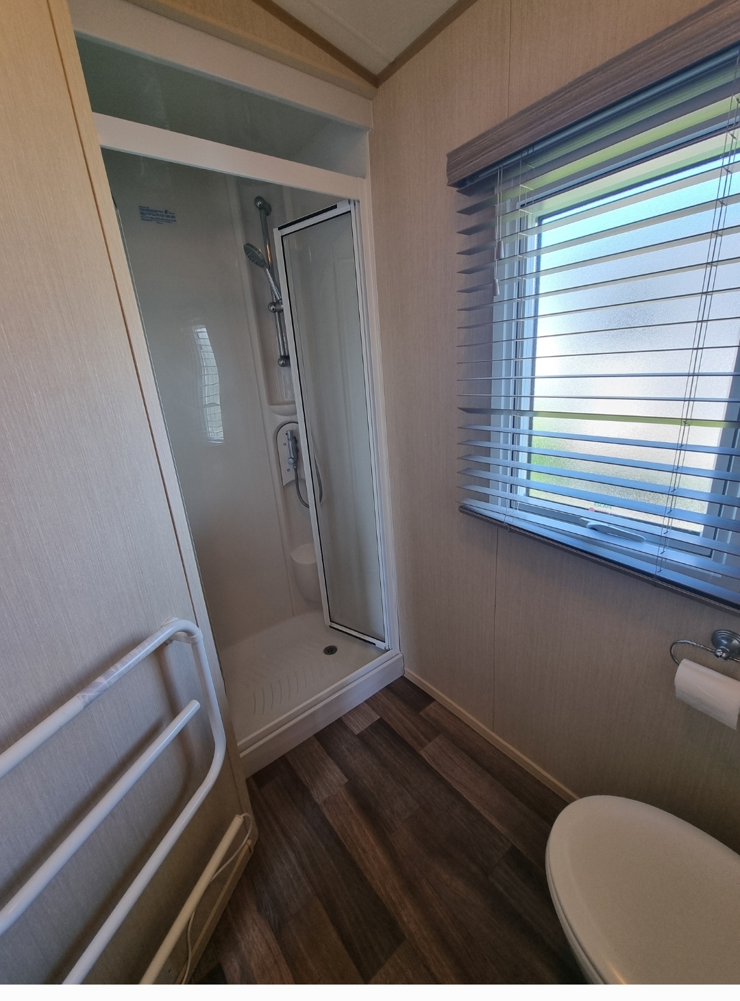 We have 2 bedrooms, a nice sized shower room, free standing sofa and dining area .